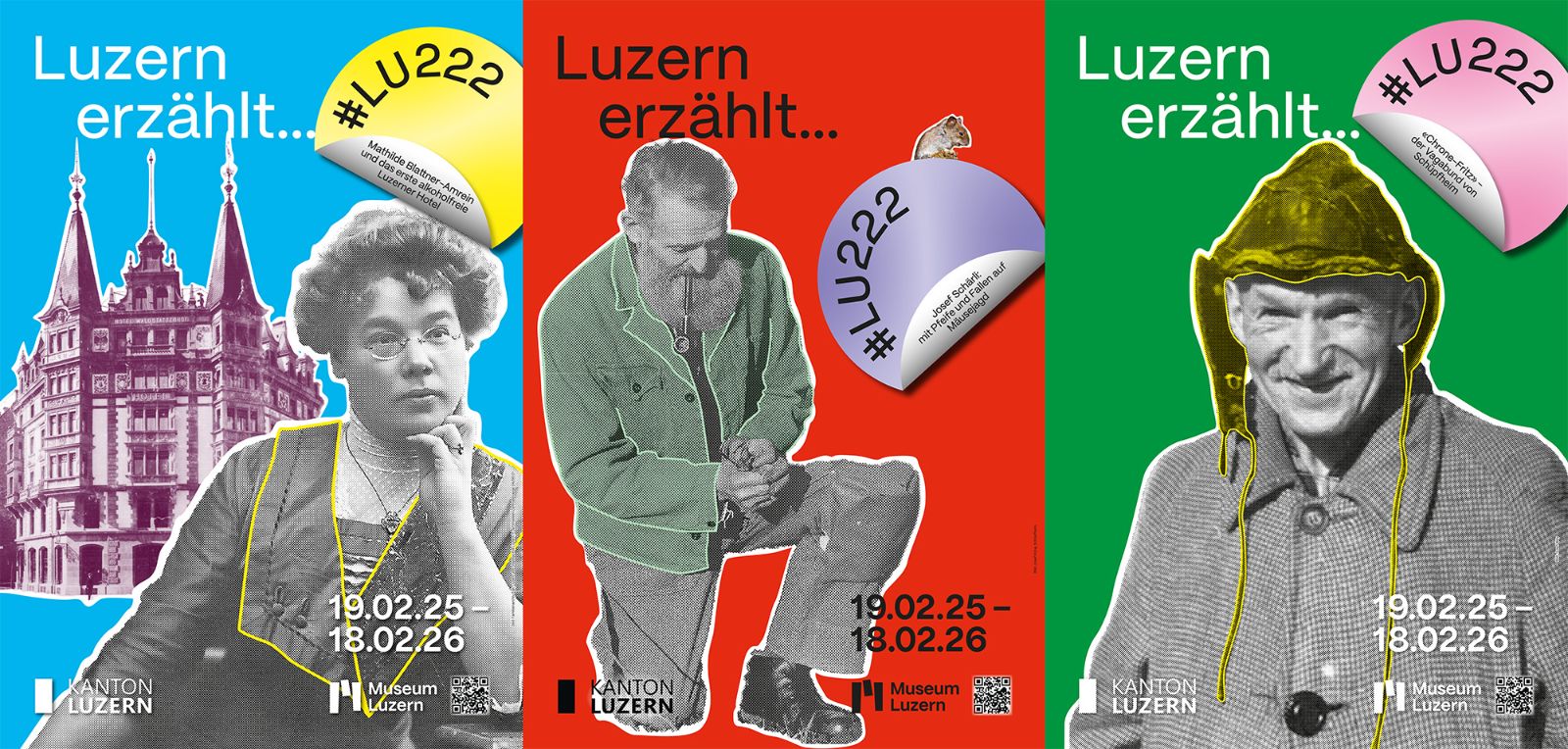 Über 50 Luzernerinnen und Luzerner haben ihre Geschichte mit uns geteilt, in Bild und Text, und nahmen damit am LU222-Plakatwettbewerb teil. Die Gewinner-Beiträge wurden von Grafikerin Jeanne Reinacher bearbeitet. Im Herbst 2025 sind die Plakate im ganzen Kanton zu sehen.